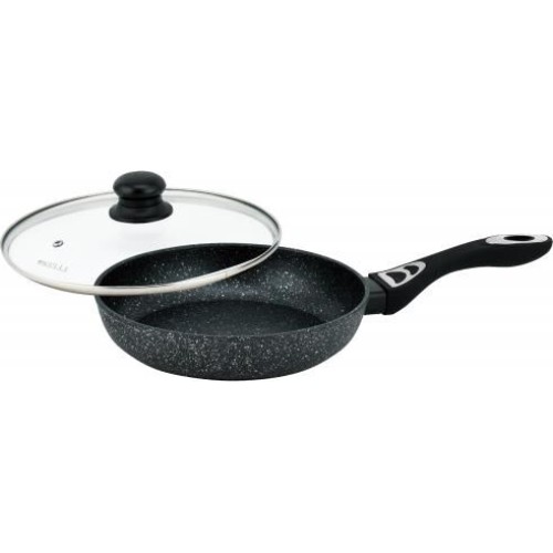 Сковорода с антипригарным мраморным покрытием Диаметр: 24 см Материал: алюминий Индукционное дно Антипригарное покрытие Стеклянная крышка с паровыпуском Подходит для всех видов плит Можно мыть в посудомоечной машине В индивидуальной подарочной коробке