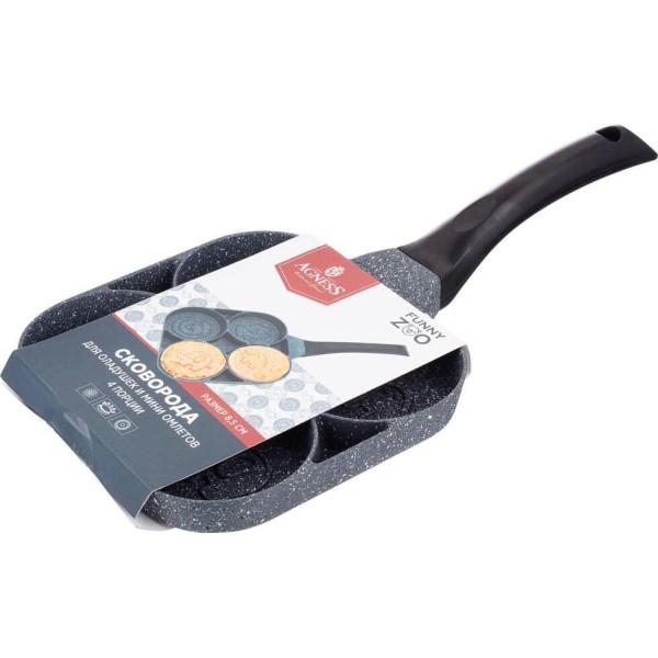 Сковорода AGNESS 932-006 СМАЙЛ с мрамор. а/приг. покрытием d18,5см, h2,5см