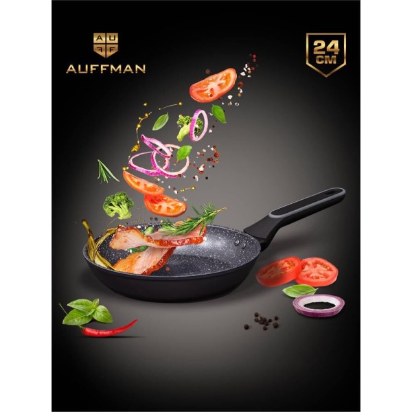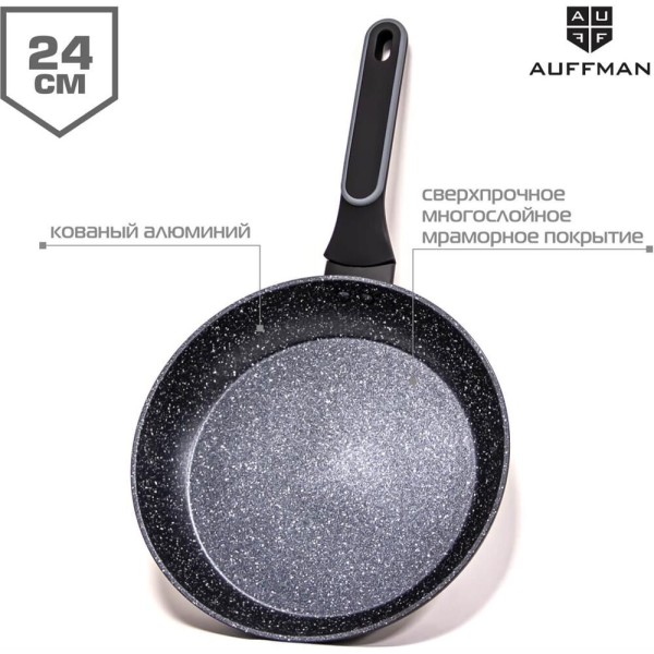 Сковорода. Кованый алюминий Толщина края и дна 4мм, толщина изделия 3мм Индукционное дно Ручка с софт-тач покрытием Внутри антипригарное покрытие с белыми точками, 2 слоя. Снаружи высокотемпературное покрытие