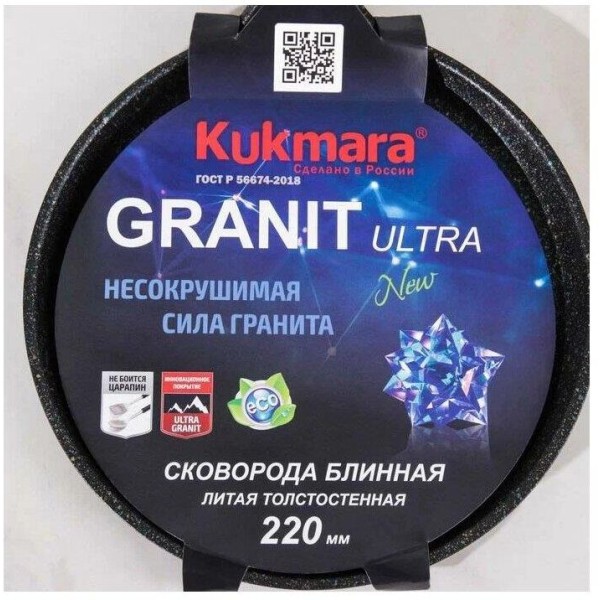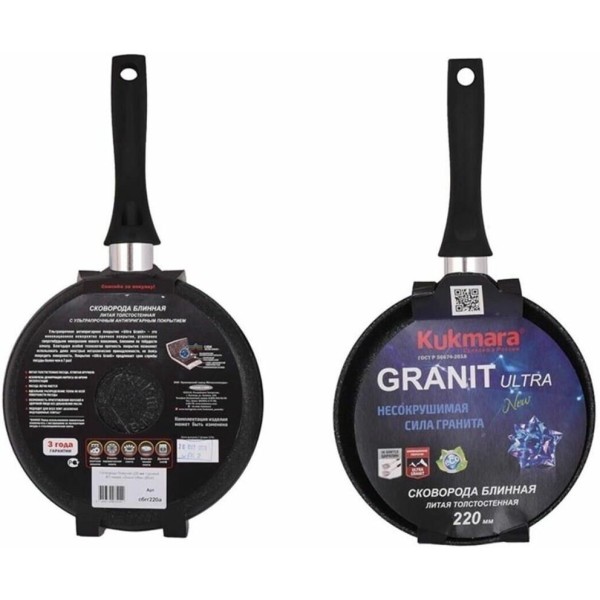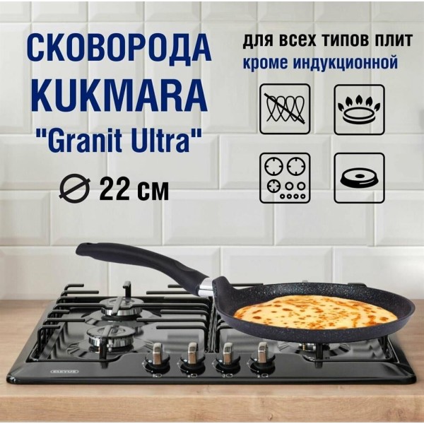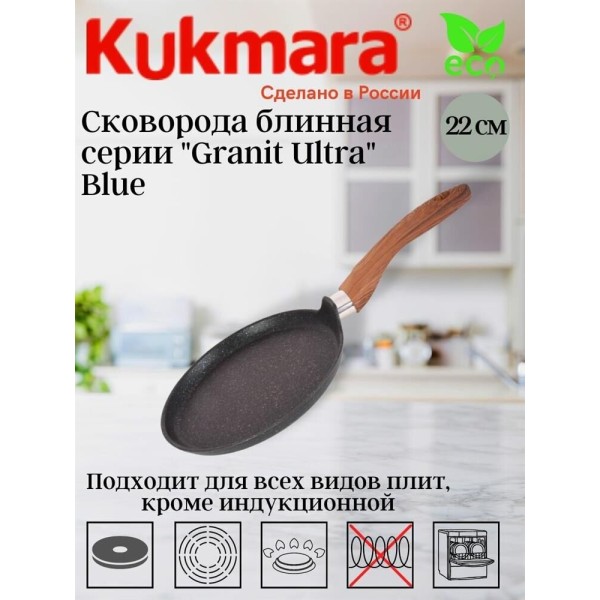 Сковорода KUKMARA Сбгги222а а/пр литая блинная 22см Granit ultra blue индукция