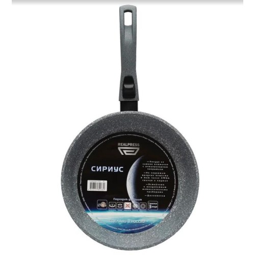 Сковорода REALPRESS 28 см серии СИРИУС со съемной ручкой изготовлена в России из литого алюминия с многослойным антипригарным покрытием. Антипригарное покрытие наносится методом распыления под высоким давлением, что обеспечивает его жесткое сцепление с поверхностью металла. Это является гарантией длительного срока службы сковороды. Покрытие не содержит вредных веществ, в том числе ПФОА, свинца и кадмия, состоит из натуральных компонентов, не выделяет при эксплуатации посторонних веществ, устойчиво к непреднамеренному воздействию металлическими приборами. Сковорода имеет толстые стенки (около 3,5 мм) и утолщенное дно (около 6,5 мм). Сковороды RealPress идеально подходят для приготовления любых видов блюд: мясо, овощи, омлеты, блины, оладьи, гарниры, плов, в ней можно бережно тушить и готовить полезную и здоровую еду практически без использования масла! Благодаря равномерному нагреву и распределению тепла при их использовании можно не пережаривать пищу. Сковороды можно использовать на газовых, электрических, ст