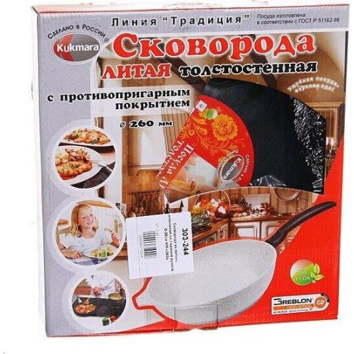 Объем, л./размер, см: 26см Материал: литой алюминий Коллекция/серия: Традиция Торговая марка: Kukmara Толщина дна: 6 Толщина стенок: 4.5 Источник тепла: Все виды плит, кроме индукционной Тип упаковки: коллективная Внутреннее покрытие: антипригарное покрытие Greblon C2 фирмы Weilburger Coatings GmbH Внешнее покрытие: антипригарное покрытие Greblon C2 фирмы Weilburger Coatings GmbH