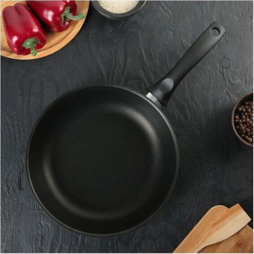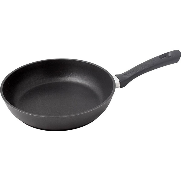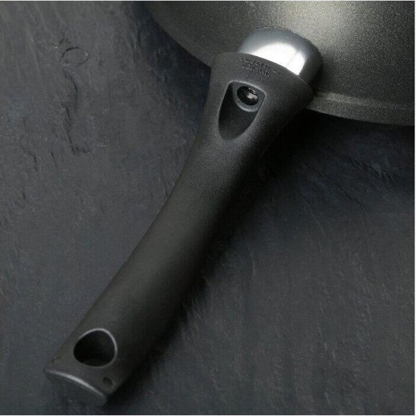 ненагревающаяся съемная ручка из бакелита; продукты не пригорают и сохраняют свой вкус; высокая теплопроводность и эргономичность; легкость мытья; возможность использования минимального количества жира; длительное сохранение тепла