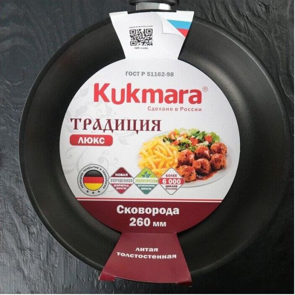 Объем, л./размер, см: 26см Материал: литой алюминий Коллекция/серия: Традиция Торговая марка: Kukmara Толщина дна: 6 Толщина стенок: 4.5 Источник тепла: Все виды плит, кроме индукционной Тип упаковки: цветная коробка Внутреннее покрытие: антипригарное покрытие Greblon C2 фирмы Weilburger Coatings GmbH Внешнее покрытие: декоративное покрытие Poli Decor, Кирово-Чепецк