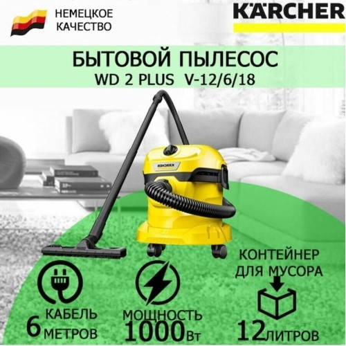 Строительный пылесос Karcher WD 2 Plus V-12/6/18/C, желтый [1.628-015.0]