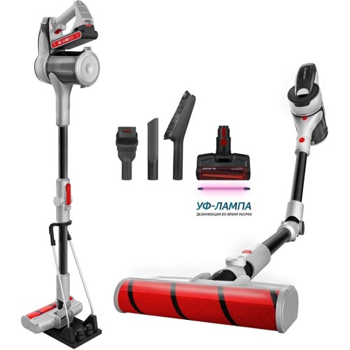 вертикальная парковка, индикатор заполнения пылесборника, управление мощностью на рукоятке, место для хранения насадок