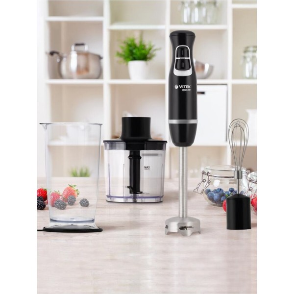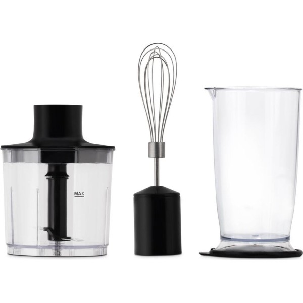 Мощность 600 Вт ,2 скорости, 4 насадки: измельчитель (400 мл), Насадка-блендер, Насадка-венчик, Стакан для смешивания (600 мл )