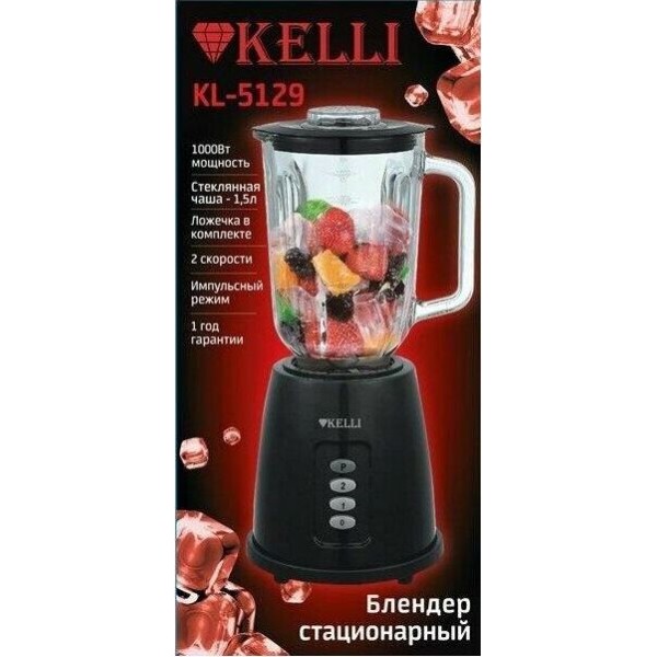 Блендер стационарный Мощность: 1000 Вт Объем СТЕКЛЯННОЙ чаши: 1,5 л Число скоростей: 2 Ложечка в комплекте Ножи из нержавеющей стали Палочка для перемешивания Импульсный режим Отверствие для добавления ингредиентов Противоскользящие ножки 220-240 В, 50\ Гц