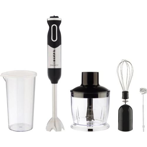 2 скорости работы Обычный и Turbo режим Регулятор скорости Ножи из нержавеющей стали Металлическая насадка блендер Стакан для смешивания 600 мл с крышкой Измельчитель 500 мл Венчик Вспениватель молока Петля для подвешивания Мощность 800 Вт Длина шнура 1,5 м