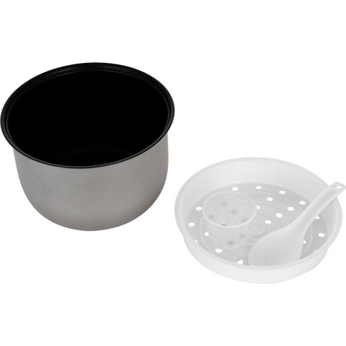 12 программ и предустановок, Имеет функции отложенного запуска и подогрева пищи, Индикация стадии приготовления блюд, Чаша с антипригарным покрытием, Облицовка корпуса из нерж. стали, Режим поддержания тепла, Таймер с LED-индикацией, Аксессуары в комплекте (ложечка, мерный стакан, приспособление для готовки на пару), Объем чаши — 5 литров, Мощность — 950 Вт, 220-240 V / 50 Hz.