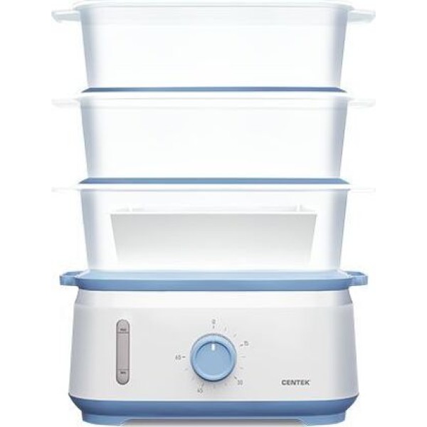 CENTEK CT-1462 <9л> 1050Вт Мощность1050 Вт Общий объем9 л Таймер60 мин. 3 чаши для приготовления Быстрое парообразование Резервуар для воды1.5 л Индикатор работы Окно уровня воды Чаша рисоварка Стальной корпус Габариты в собранном виде330*214*452 мм