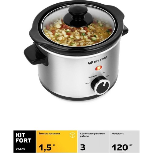 Медленноварка KITFORT КТ-205 серебристый/черный