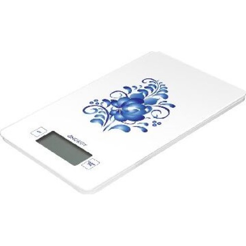 Стеклянная поверхность. Размер платформы: 13,3*20,8 см. Сенсорное управление. Макс. нагрузка 5кг. Цена деления 1г. LCD дисплей. Выбор единиц измерения: грамм/фунт/ унция/кг. Автоотключение. Функция "Тара". Питание от батареи: 3хААА (входят в комплект).