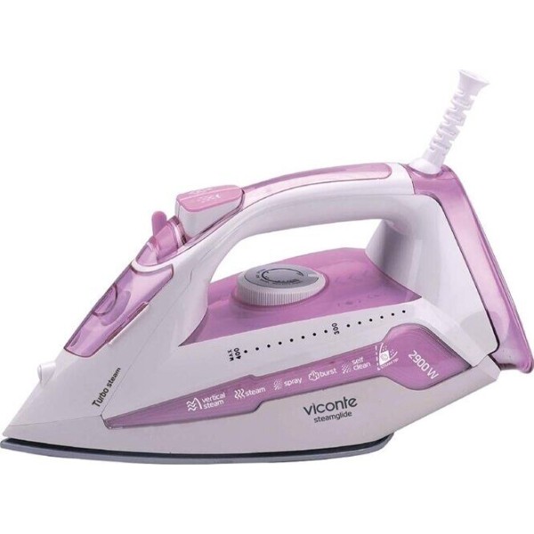 Утюг, мощность 2900W, керамическая подошва, вертикальная подача пара, паровой удар до 140 г/мин, сухое глажение, терморегулятор, функция самоочистки, возможность регулировки степени отпаривания, мощный разбрызгиватель, индикатор нагрева утюга, резервуар для воды – 400 мл, стаканчик для наполнения водой. Цвет: розовый.