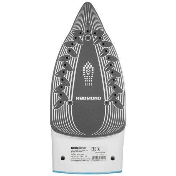 REDMOND RI-C278, Голубой Цвет белый голубой Тип управления механический Мощность 2200 Вт Материал пластик Покрытие подошвы керамика Покрытие ручки прорезиненное Объем резервуара для воды 240 мл Регулировка подачи пара да Паровой удар 140 г/мин Постоянная подача пара 40 г/мин Вертикальное отпаривание да Сухое глажение да Функция самоочистки да Функция разбрызгивания да Защита от поражения электрическим током класс I Защита от накипи да Защита от протекания да Индикация светодиодная Длина шнура электропитания 1,6 м Шаровое крепление шнура да Габаритные размеры 285 х 130 х 130 мм Вес нетто 0,95 кг ± 3%