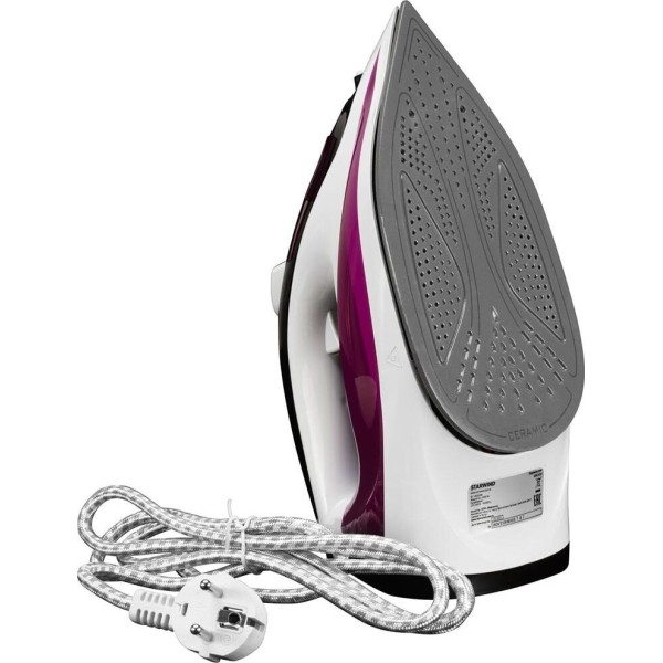 ренд STARWIND Цвет фиолетовый/белый Версия Global Мощность 2400 Вт Материал подошвы керамика Вертикальное отпаривание есть Автоматическое отключение есть Дополнительные функции паровой удар, система самоочистки, функция разбрызгивания Защита Защита от перегрева, самоочистка от накипи, система самоочистки Конструкция Объeм резервуара для воды 350 мл Длина сетевого шнура 2 м Вес и габариты Размеры ДхШхВ: 27х28.20х14.20 см Вес 1.4 кг Прочее Особенности Вертикальное отпаривание, Противокапельная система, Распылитель для воды Входит в комплект документация, утюг