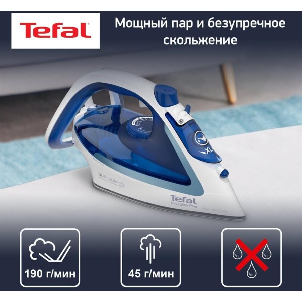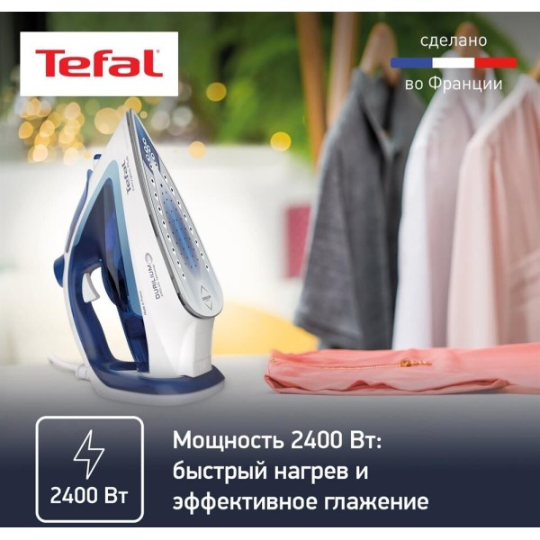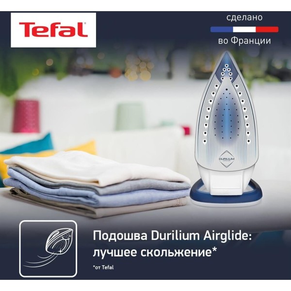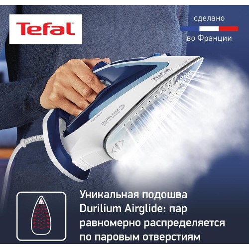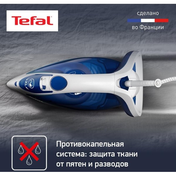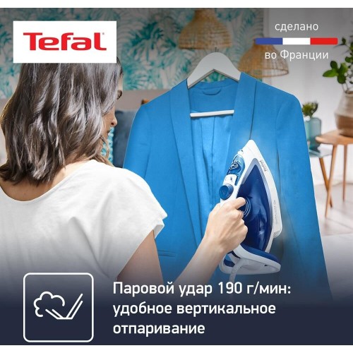 [Утюг] TEFAL FV5715E0 Утюг, 2500Вт, 195г, белый/синий