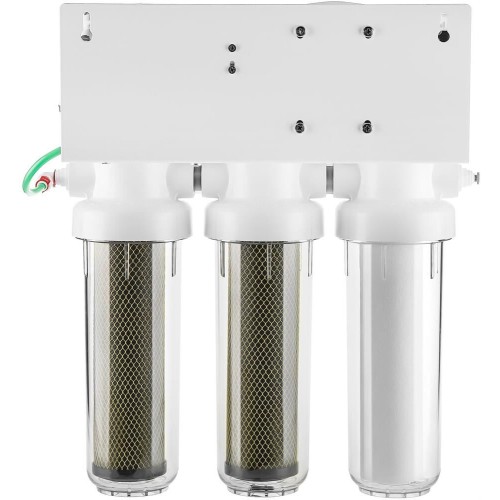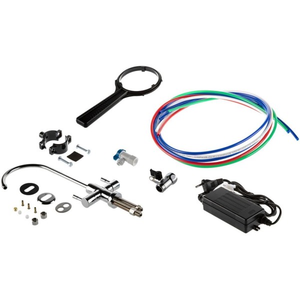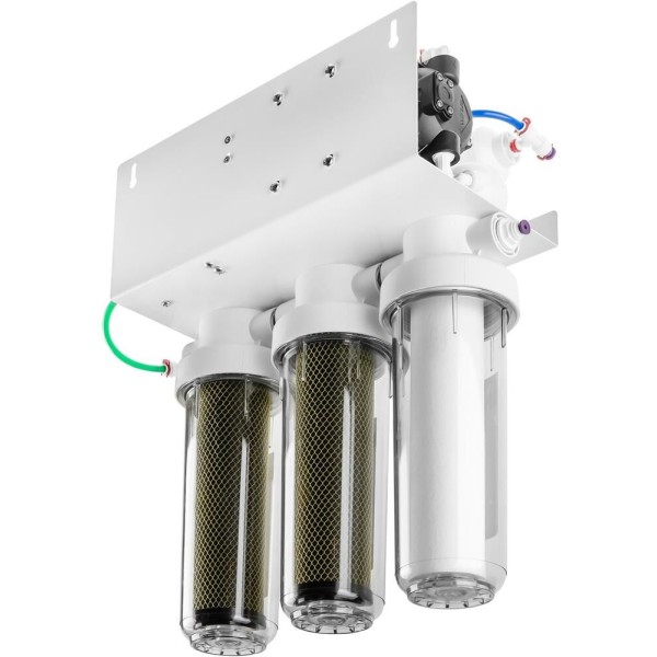 вентиль накопительного бака (1 шт.), корпус минерализатора (1 шт.), соленоидный клапан (1 шт.), корпус мембраны обратного осмоса (1 шт.), блок питания (1 шт.), насос (помпа) в сборе (1 шт.), корпус угольного постфильтра (1 шт.), обратный клапан (1 шт.), контроллер дренажа (1 шт.), реле высокого давления (1 шт.), реле низкого давления (1 шт.), хомут дренажный (1 компл.), адаптер-вентиль (1 шт.), комплектация: корпуса картриджей (I, II, III ступеней) предварительной очистки в сборе на каркасе (1 компл.), накопительный бак (1 шт.), кран для чистой воды №10 (1 компл.)