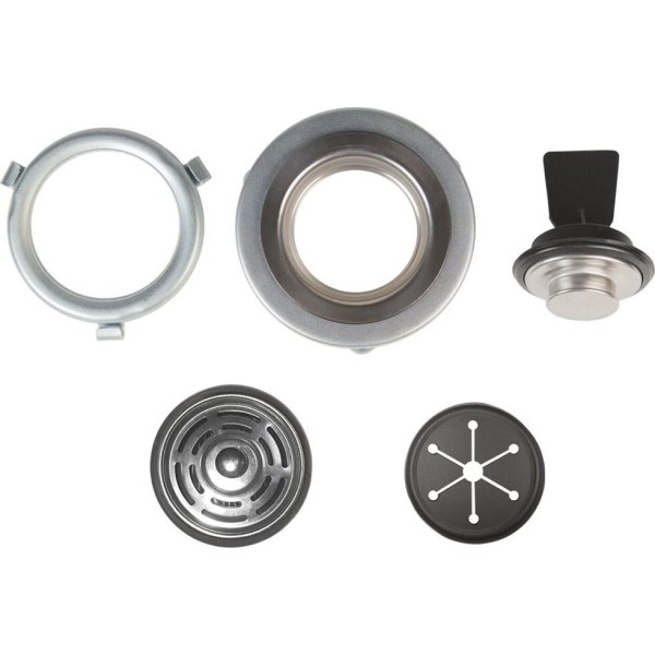 сливная труба, монтажный узел, фильтрующая сетка с резиновой пробкой, комплектация: пневмовыключатель