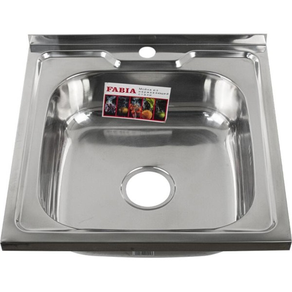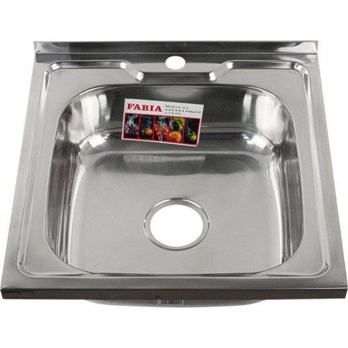 Накладная мойка FABIA из нержавеющей стали отличный вариант для кухни, она прослужит многие годы. Классическая форма и хромированный цвет гармонично впишутся в любой интерьер и никогда не выйдут из моды. Оптимальный размер позволяет свободно мыть посуду, без страха её разбить. Мойка устанавливается на тумбочку. Практичная площадка, расположенная по центру, даёт возможность вмонтировать любую понравившуюся модель смесителя. В комплекте сифон с большой горловиной с переливом. Габаритные размеры: ширина 500 мм, длина 500 мм, глубина 160 мм, толщина стали 0,6 мм. Вес - 2,200 кг, объём - 0,01352 м3.