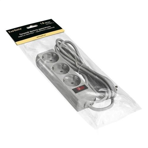 Сетевой фильтр EXEGATE (221177) SP-3-1.8G (3 роз/1.8M/евровилка) серый