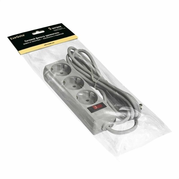 Сетевой фильтр EXEGATE (221183) SP-3-5G (3 роз/5M/евровилка) серый