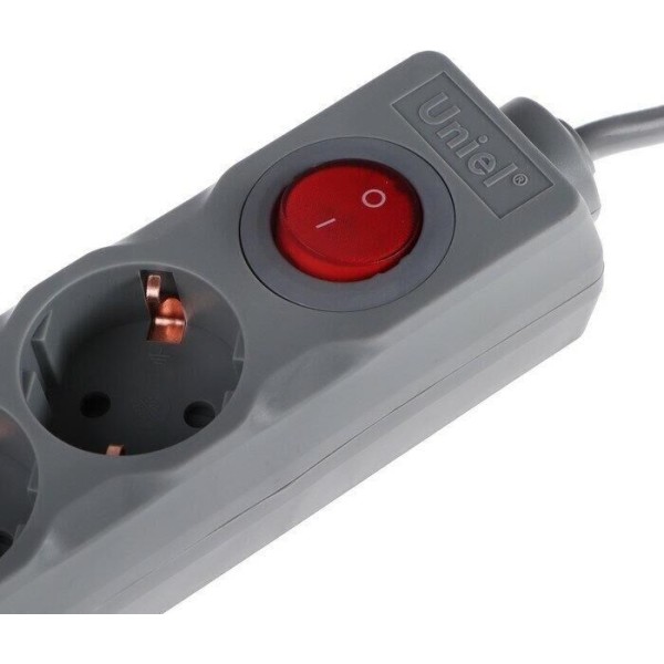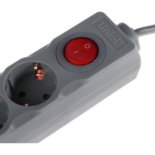 UNIEL (UL-00001746) S-GSU5-3 GREY Cетевой фильтр серии Universal, 3м (Пвс 3*0,75), 5 гнезд, с/з. 10А.