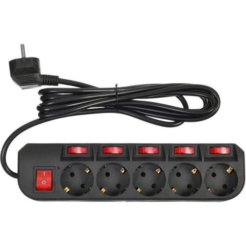 Омедненный (CCA) основной силовой кабель и все проводники. Длина шнура - 5м. Количество выходных розеток - 5. Входная вилка, тип - EURO. Выходные розетки с заземлением типа EURO - 5. Номинальное напряжение питающей сети - 220В. Максимальная рассеиваемая энергия - 107Дж. Максимальный импульсный ток помехи - 4500A. Частота сети - 50 Гц. Максимальная нагрузка - 2200Вт. Максимальный ток нагрузки - 10A. Подавление высокочастотных помех. Защита от короткого замыкания - биметаллический размыкатель. Защита от перегрева. Автоматический (термобиметаллический) предохранитель. Подавление импульсных помех. Индивидуальные выключатели розеток . Цвет - черный.