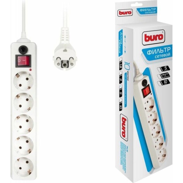 Сетевой фильтр BURO 500SH-5-W 5м 5 розеток белый
