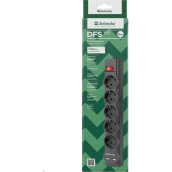 Сетевой фильтр DEFENDER (99755) DFS 755 5 м, 5 розеток