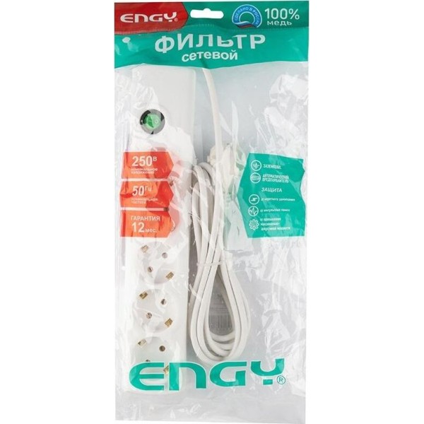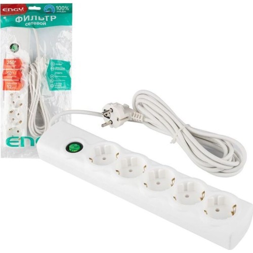 Сетевой фильтр ENGY Сетевой фильтр ENGY "Сеть-2" 3м/5 роз. (ПВС 3*0,75) белый 186758