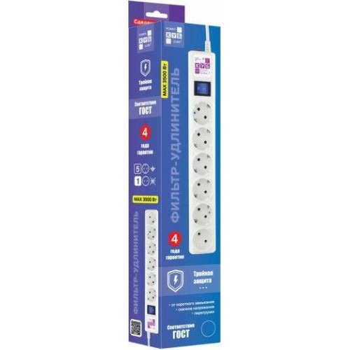 POWERCUBE Сетевой фильтр SPG(5+1)-16B-5М-WHITE, 5м, белый