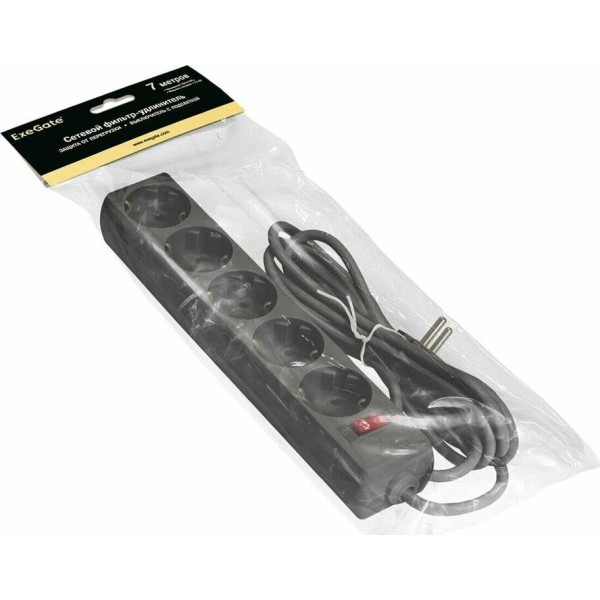 [Сетевой фильтр] Exegate EX279179RUS Сетевой фильтр ExeGate SP-5-7B (5 розеток, 7м, евровилка, черный)