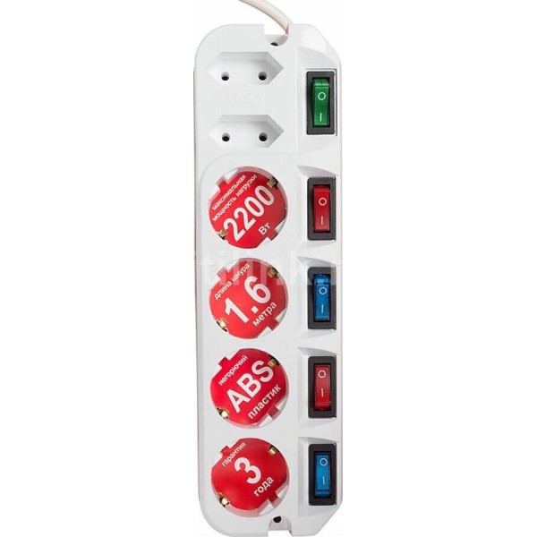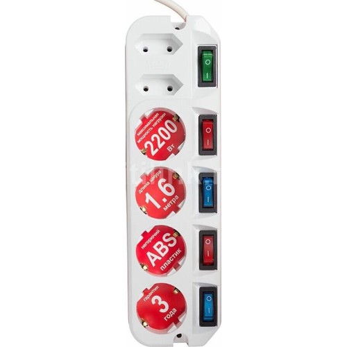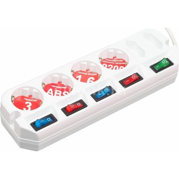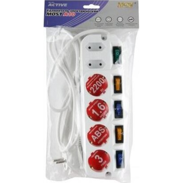 MOST Сетевой удлинитель A10 1.6м (6 розеток) белый (пакет ПЭ)
