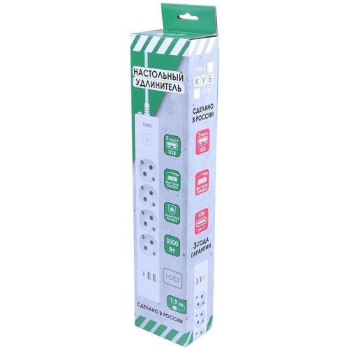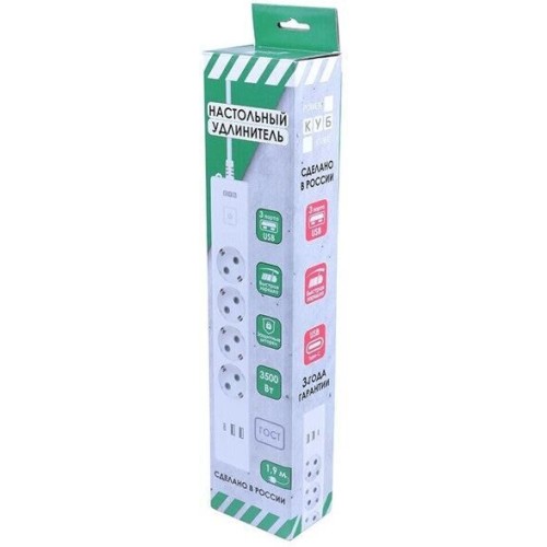 POWERCUBE Сетевой удлинитель PC-6-2M, 1.9м, белый