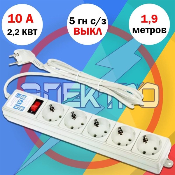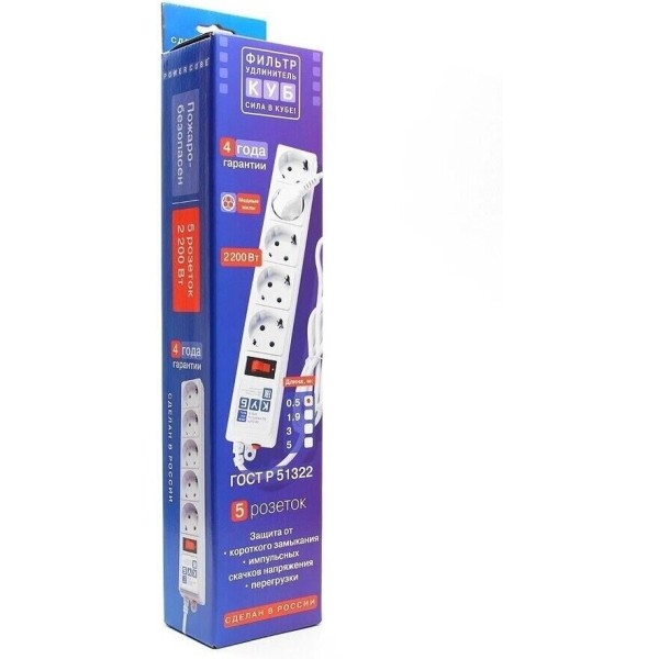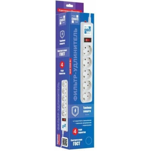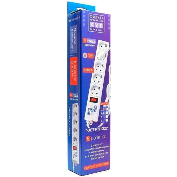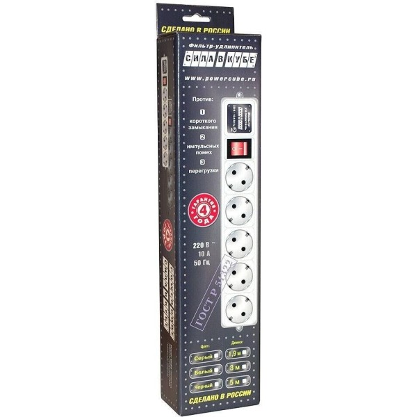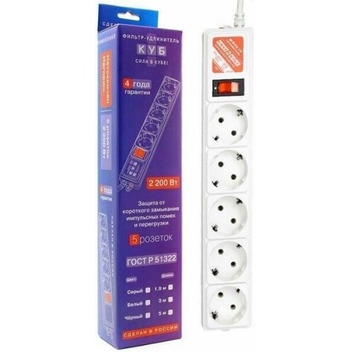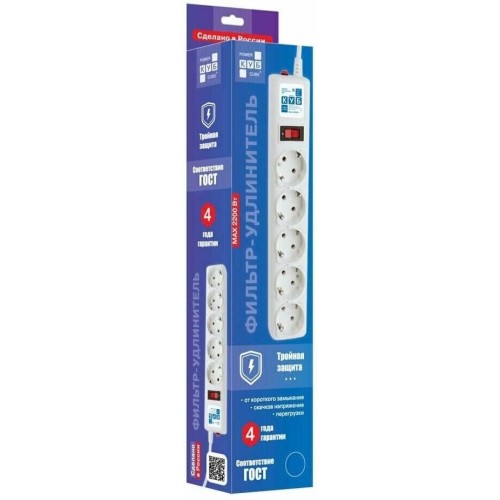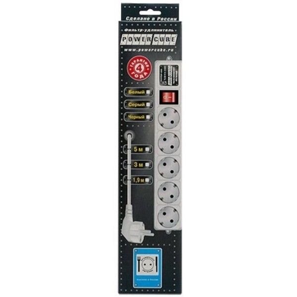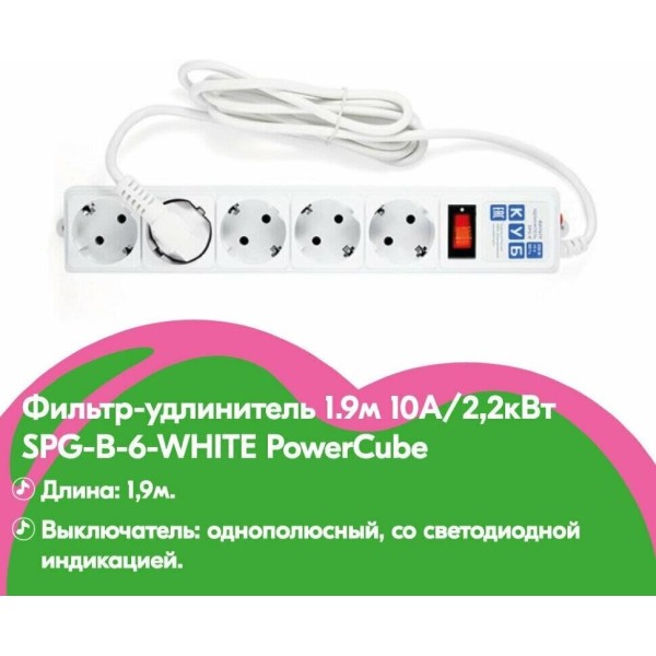POWERCUBE Сетевой фильтр Power Cube SPG-B-6 white (1,9 м, 5 розеток, 10А) (SPG-B-6-WHITE)