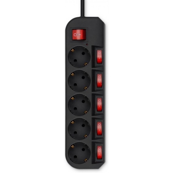 Основные характеристики - Тип устройства: сетевой фильтр - Применение: для дома и дачи, для компьютера Электропитание - Рабочая частота: 50 Гц - Максимальное входное напряжение: 220 B - Номинальная мощность: 2200 Вт - Максимальный ток нагрузки на выходе: 10 А - Максимальная поглощаемая энергия: 107 Дж - Количество гнезд: 5 Безопасность - Защита от короткого замыкания: есть - Защита от перегрузки: есть - Защита от повышенного напряжения: нет - Фильтр импульсных помех: да Функции - Общий выключатель розеток