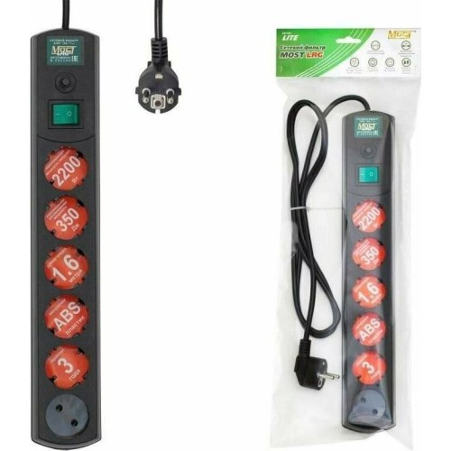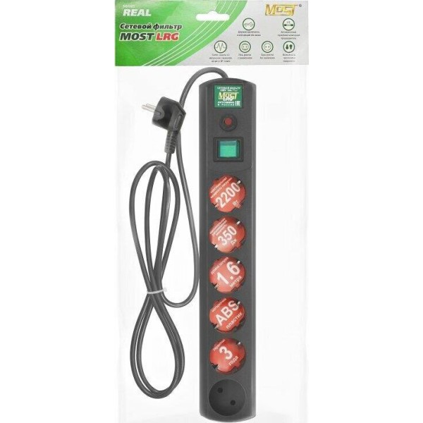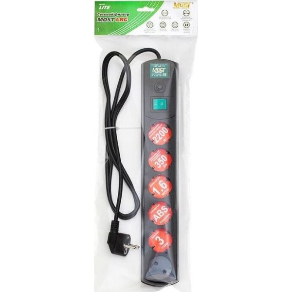 MOST Сетевой фильтр LRG 1.6м (6 розеток) черный (пакет ПЭ)