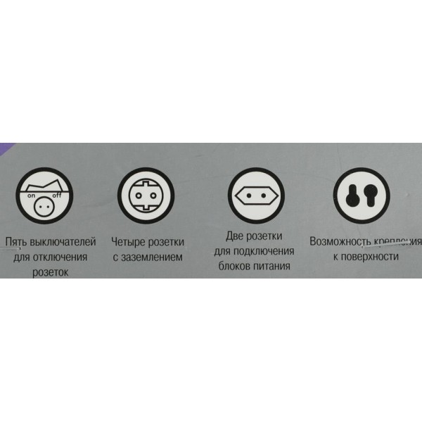 с креплением, световая индикация, крепежные отверстия, отдельные выключатели розеток