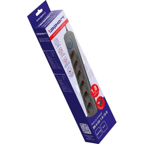 IPPON Сетевой фильтр BK-6-EU-1.8-10-B, 1.8м, черный
