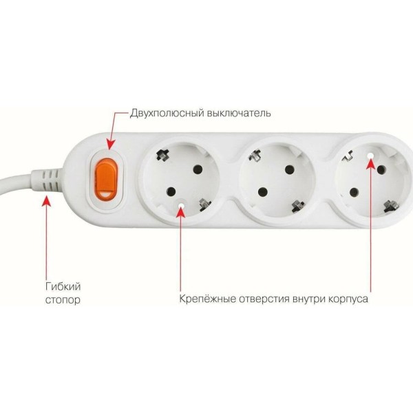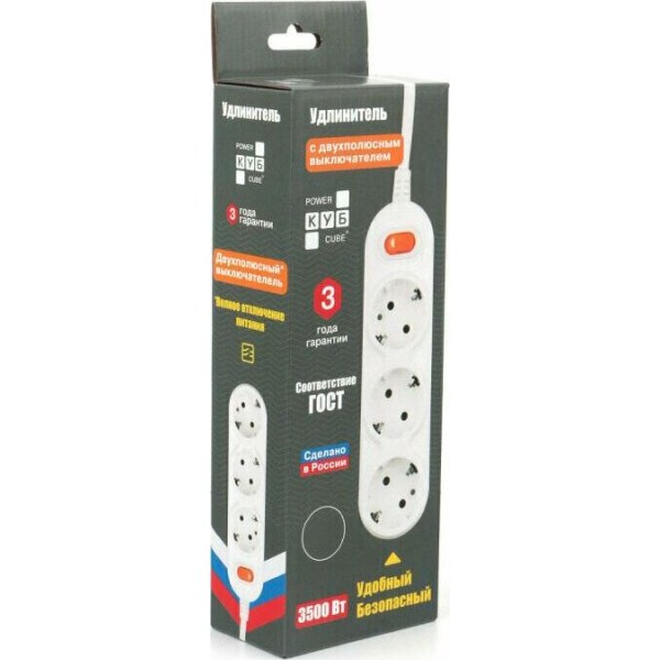 POWERCUBE Сетевой удлинитель PC-1-3M, 3м, белый [pc-1-3м]