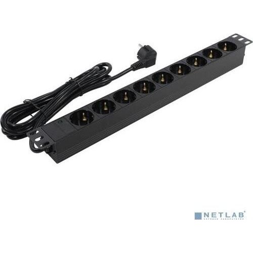 [Сетевой фильтр] Exegate EX280851RUS Блок розеток ExeGate ServerPro PDU-19H905 Al-9S-EU3, 19",1U,алюм, 9Schuko, евровилка, 3м