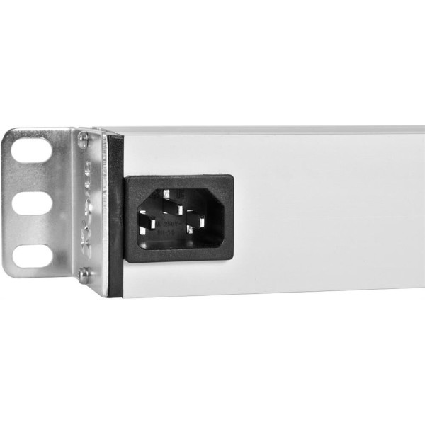 Блок силовых розеток имеет десять портов IEC 60320 C13, выполнен в анодированном алюминиевом корпусе. На лицевой части блока установлен фильтр с индикатором. Вход кабеля (шнура) питания - IEC 60320 C14, находится на задней стороне блока. Кабель в комплект не входит.