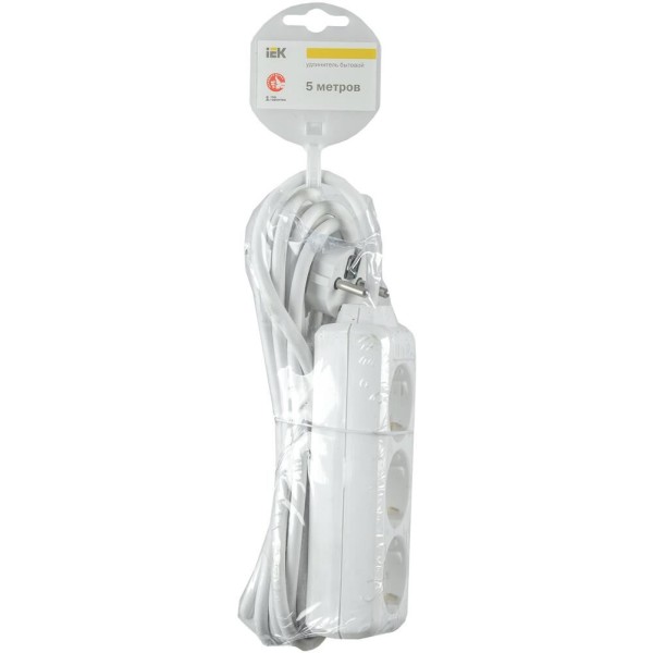 удлинитель IEK Сетевой удлинитель У03К 5м (3 розетки) белый (пакет ПЭ)