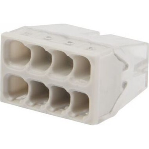 Технические характеристики: Материал корпуса: полиамид 66 Контакты: луженая медь Количество контактов: 8 Цвет: прозрачный Напряжение: 450 В Ток: 24 А Поддерживаемое сечение: 8x0,2-2,5 мм2 (одножильный провод) Длина зачистки изоляции: 11 мм Рабочая температура: –40...+85 °С