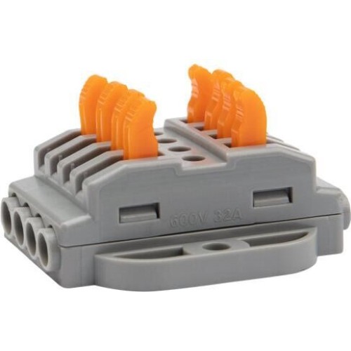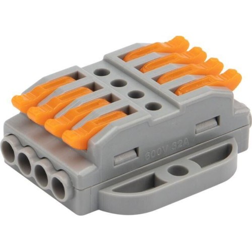 Клемма REXANT (07-6264-5) Клемма СМК 222-424P проходная 4 полюса, с монтажной площадкой (0,08-4 мм ), серая (блистер 5 шт./уп.)