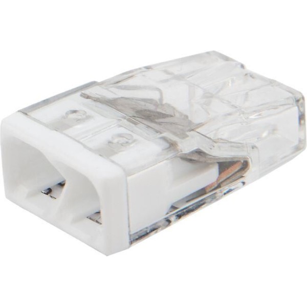Строительно-монтажные экспресс-клеммы REXANT предназначены для подсоединения медных одножильных проводников. Они являются одним из самых быстрых, надежных и удобных способов монтажа проводников в условиях нехватки и ограничения площади. Обеспечивают экономию места до 50% по сравнению с простыми пружинными клеммами. Компактный прозрачный корпус удобен для контроля соединения, а яркая цветовая разметка способствует визуальному различию клемм по количеству проводников. Экспресс-клеммы одновременно подходят для медных и алюминиевых проводников. Прочный корпус из высококачественных материалов не поддерживает горение. Быстрый монтаж обеспечивается за счет пружинного способа соединения. Технические характеристики: Материал корпуса: полиамид 66 Контакты: луженая медь Количество контактов: 2 Цвет: прозрачный Напряжение: 450 В Ток: 24 А Поддерживаемое сечение: 2x0,2-2,5 мм² (одножильный провод) Длина зачистки изоляции: 11 мм Рабочая температура: –40...+85 °С