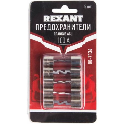 Цилиндрический плавкий предохранитель типа AGU номиналом 100А REXANT предназначен для использования в специальных держателях (капсулах) и делителях питания. Контактные поверхности предохранителя изготовлены из специального сплава для предотвращения коррозии, перегрева и обеспечения надежного контакта. Такие предохранители чаще всего используются для подключения автомобильных аудиосистем.