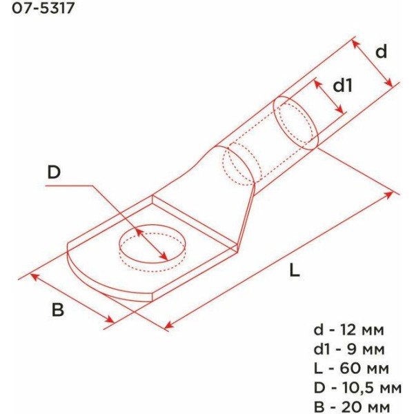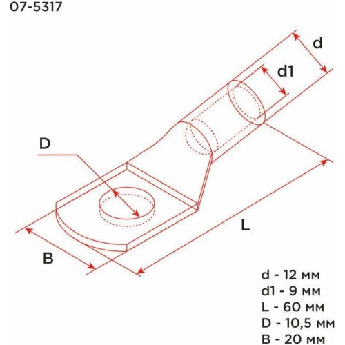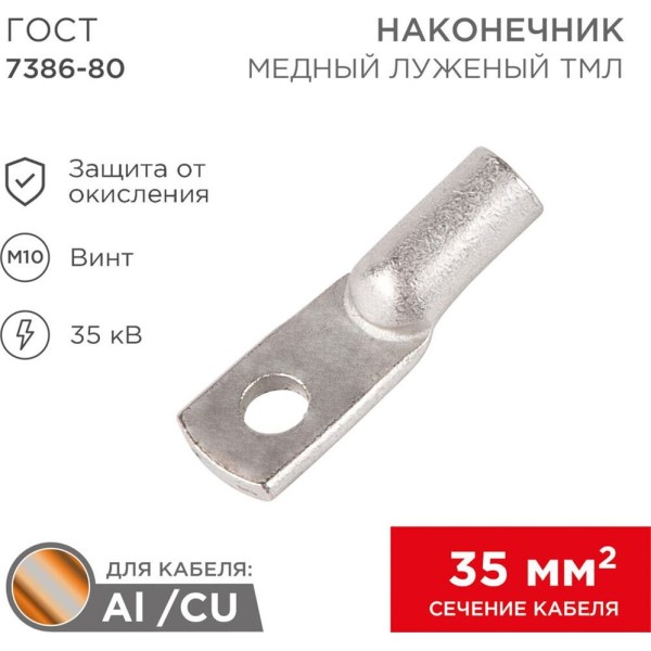 REXANT Наконечник медный луженый ТМЛ 35–10–9 (35мм² - Ø10мм) ГОСТ 7386-80 (в упак. 5 шт.)