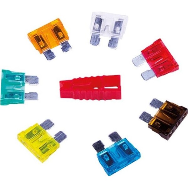 Набор автомобильных предохранителей "стандарт" REXANT флажкового типа, предназначены для защиты автомобильной сети и электроприборов от скачков электричества, короткого замыкания и чрезмерных перегрузок. Предохранители в настоящее время используются в любой транспортной авто-мото технике, оснащенной электросетью, например в легковых/грузовых автомобилях, мотоциклах, мопедах, квадроциклах, мотовездеходах, водных мотоциклах и. т. д. Предохранители REXANT относятся к виду плавких, в своей основе они состоят из легкоплавкого элемента (плавкая вставка изготовлена из высококачественного сплава цинка). В современных автомобилях находятся как минимум два блока предохранителей (под капотом и в салоне), в каждом из которых находятся от 15 до 30 предохранителей. Принцип работы: при резком превышении уровня тока (чаще всего это вызвано коротким замыканием) предохранитель выйдет из строя (перегорит), тем самым обезопасив более дорогие элементы, а также не допустит возгорания проводки автомобиля. Проверить предохранитель на целостность можно 2-мя способами: